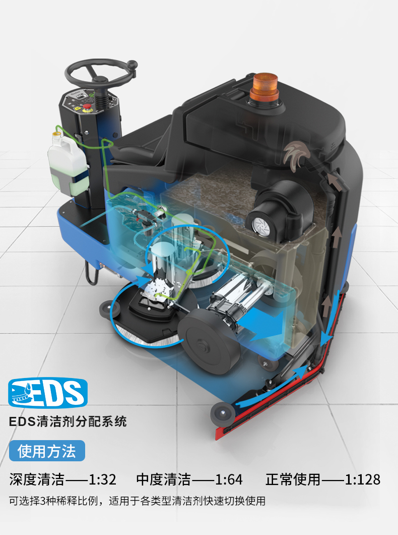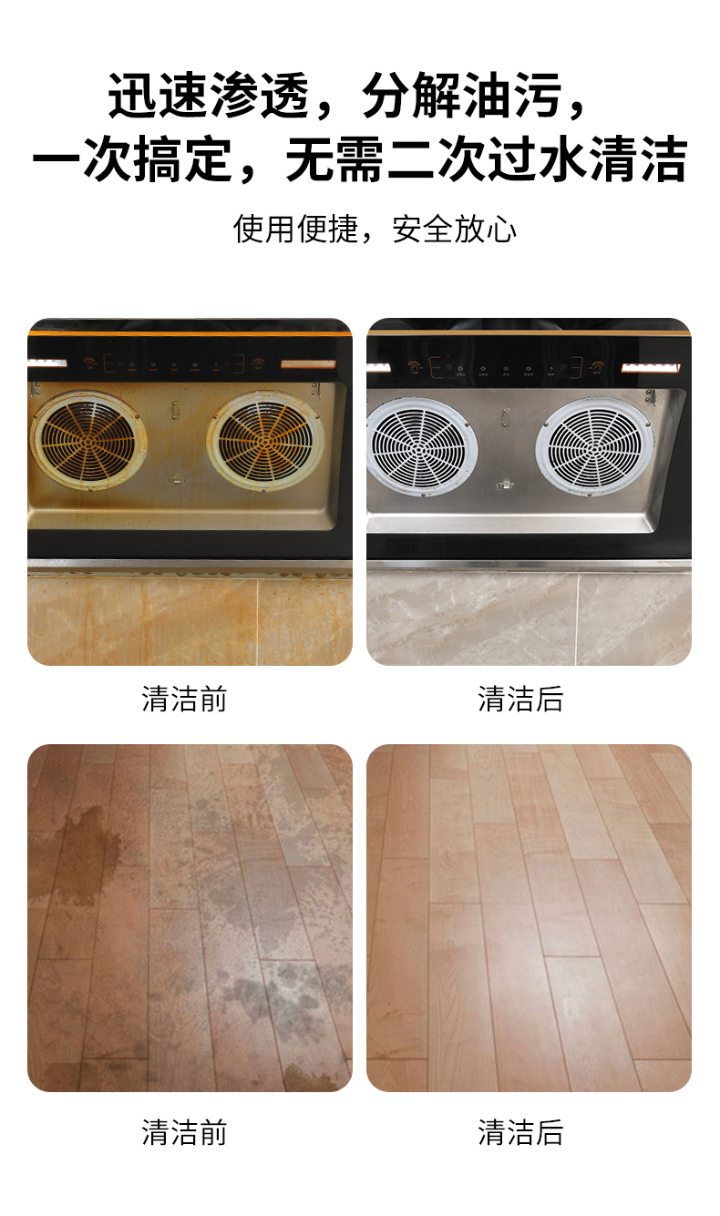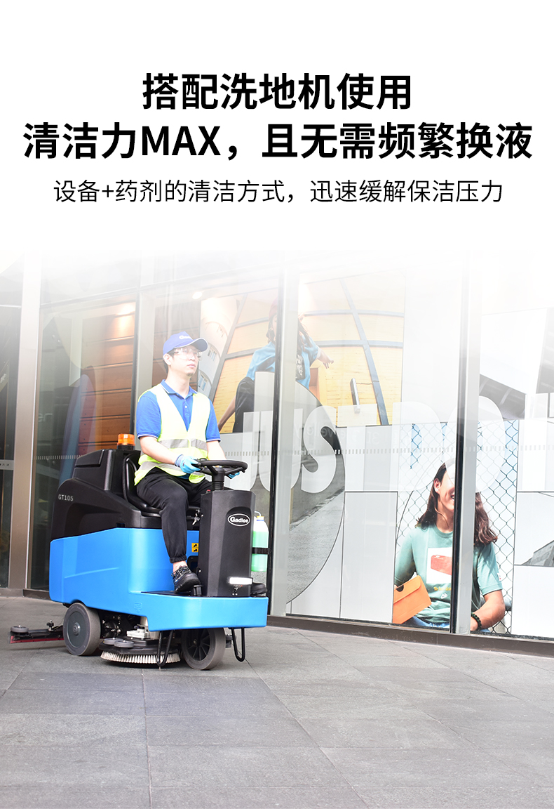 去除多种类型油污-液压油、食物油脂、机械油污等,尤其适用于重油污区域:工厂、后厨房等。适用于所有类型洗地机- 尤其湿拖效果好。