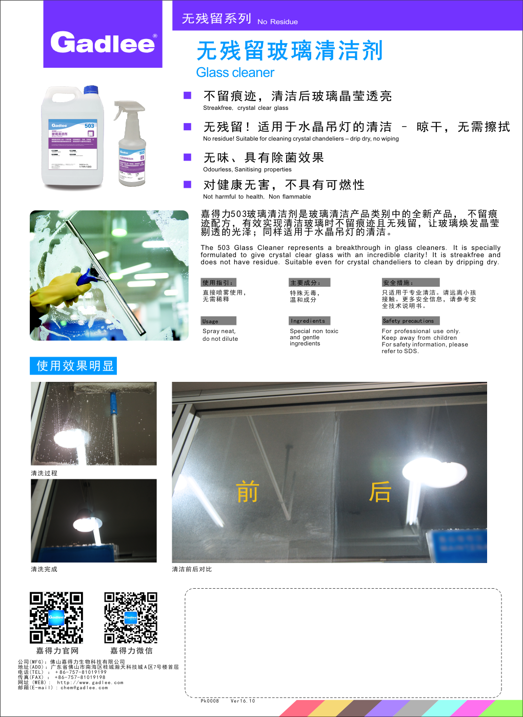 玻璃清洁剂史上的一个新突破,零残留,清洁后玻璃晶莹透亮,适用于水晶吊灯的清洁–晾干,无需擦拭,无味,具有除菌效果,不具有可燃性,安全,对健康无害。