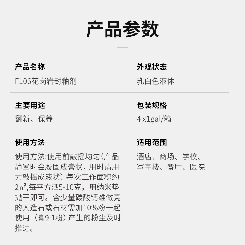 树脂玻璃配方使本品具有填充和成膜性能,可覆盖花岗石、人造石表面凹凸和纹路以及填充细小裂纹毛孔和划痕。
