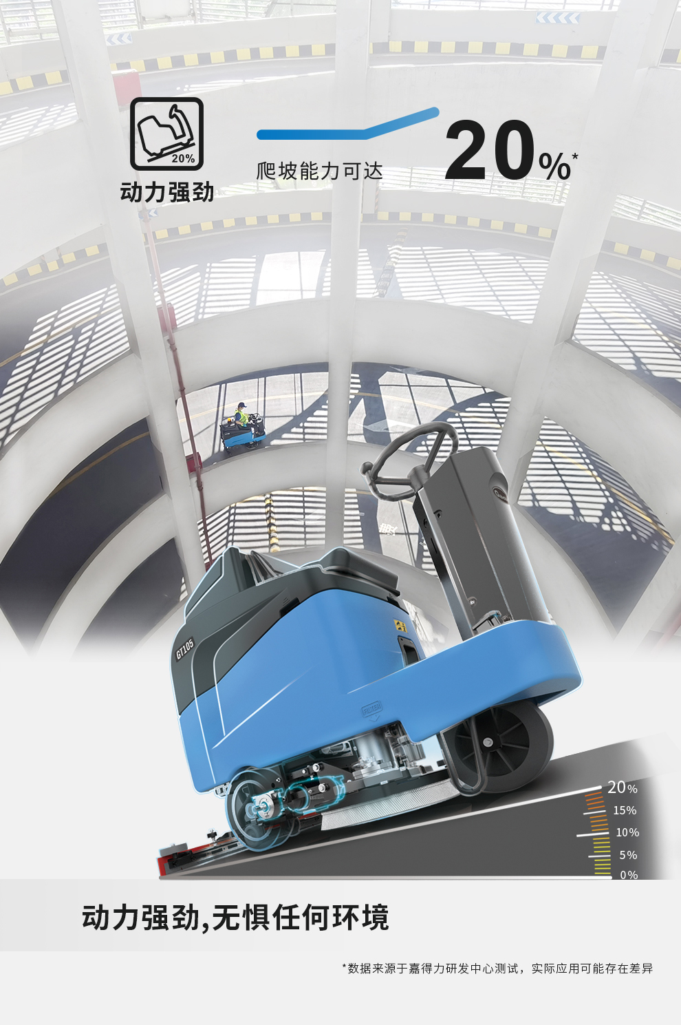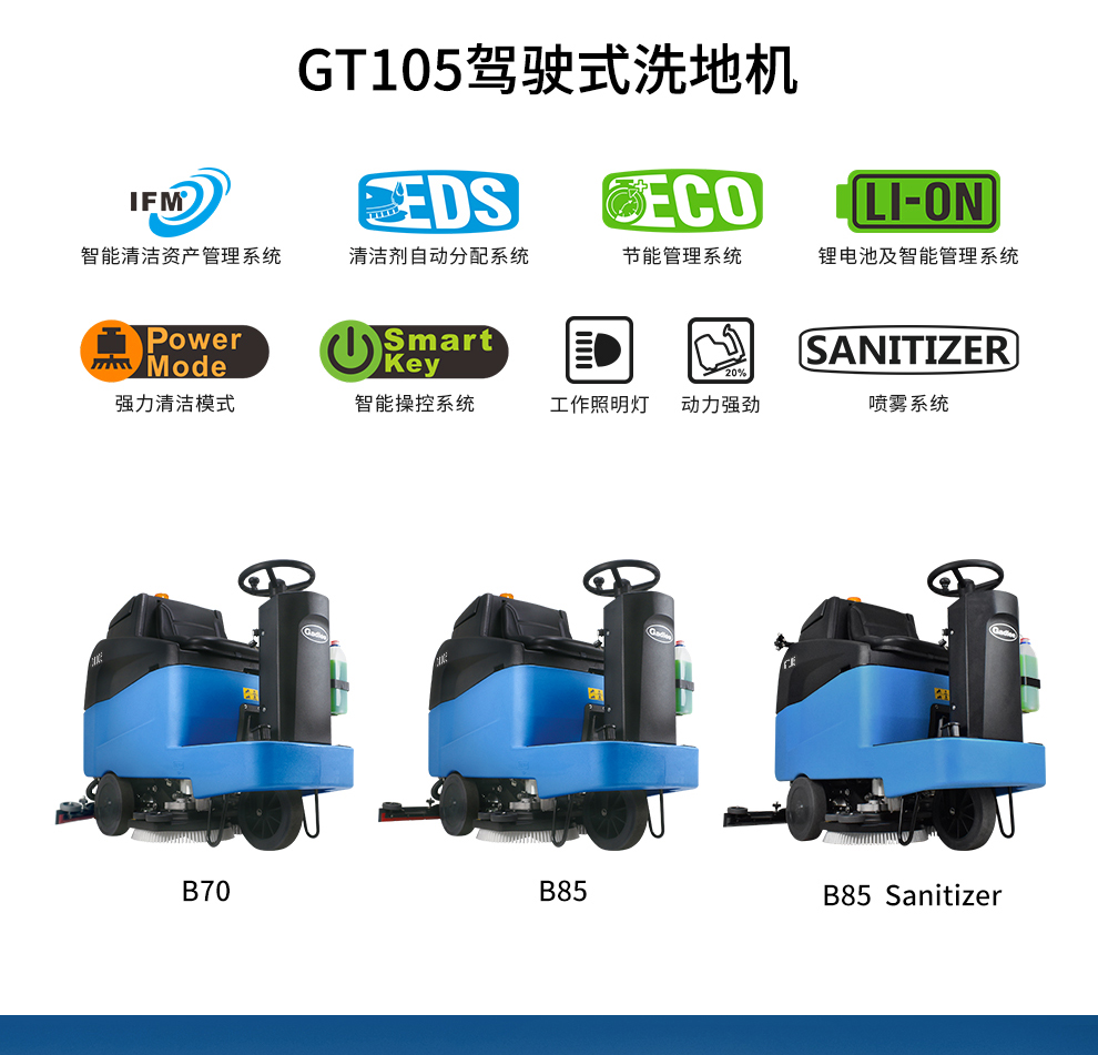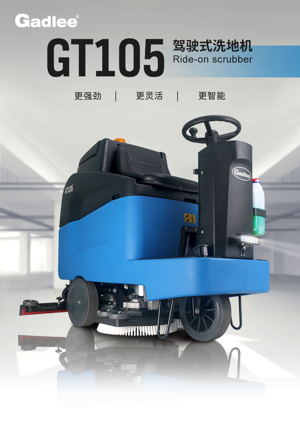 GT105驾驶式洗地机为您带来提升工作效率的元素,配备 ECO 系统及宁静型设计令 GT105 即使对噪音有严格要求的公共区域也能实现日间工作,标准配置EASE DOSE 清洁剂分配系统,使清洁剂和清水箱自动运作,有效增强清洗效果和节省清洁剂的消耗量,有效完成医院、学校、超市、商场、体育馆、餐厅、酒店、轻工业生产车间等场所的地面清洗任务!