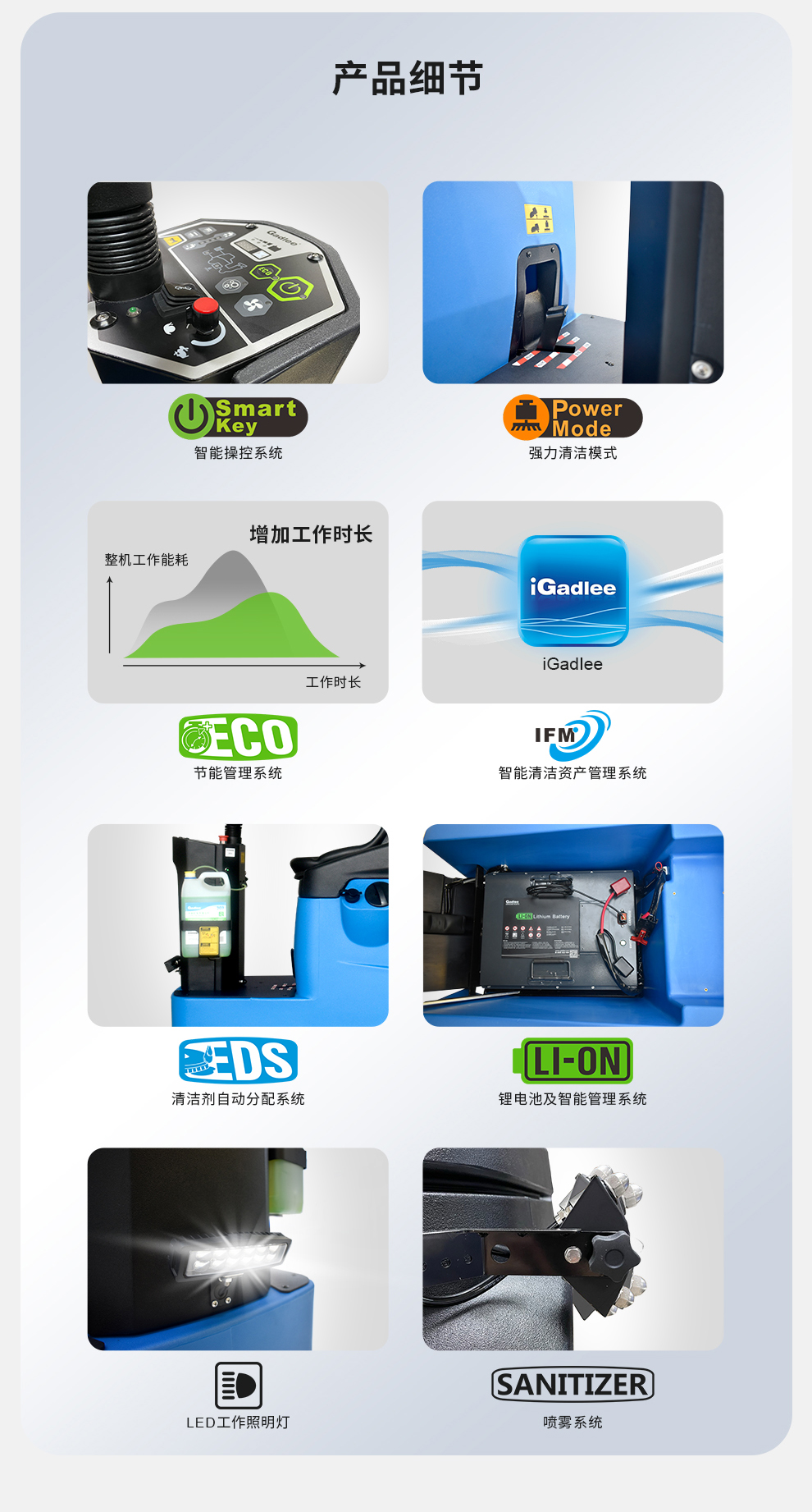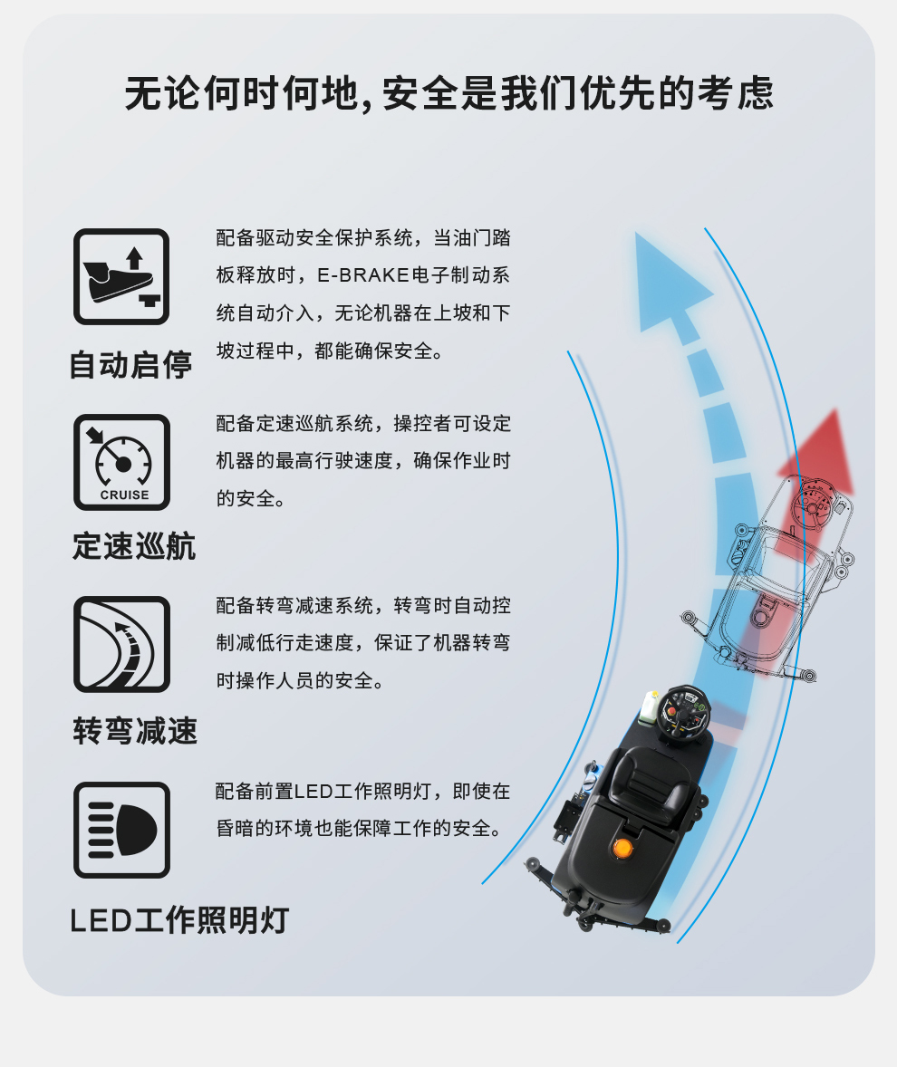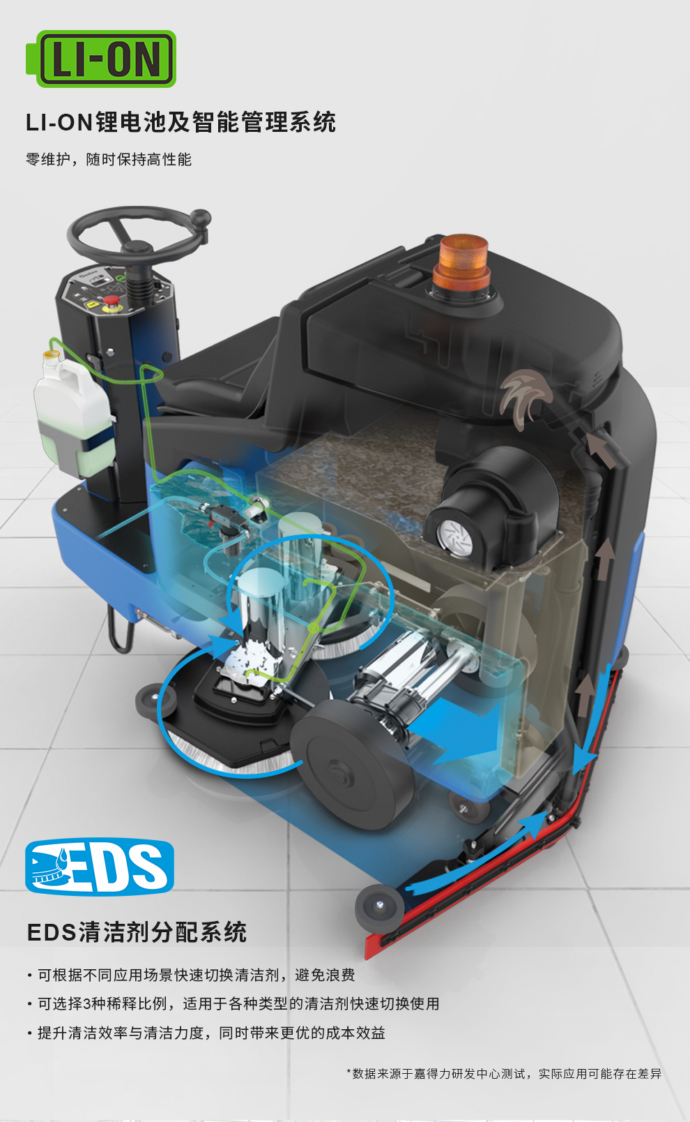GT105驾驶式洗地机为您带来提升工作效率的元素,配备 ECO 系统及宁静型设计令 GT105 即使对噪音有严格要求的公共区域也能实现日间工作,标准配置EASE DOSE 清洁剂分配系统,使清洁剂和清水箱自动运作,有效增强清洗效果和节省清洁剂的消耗量,有效完成医院、学校、超市、商场、体育馆、餐厅、酒店、轻工业生产车间等场所的地面清洗任务!
