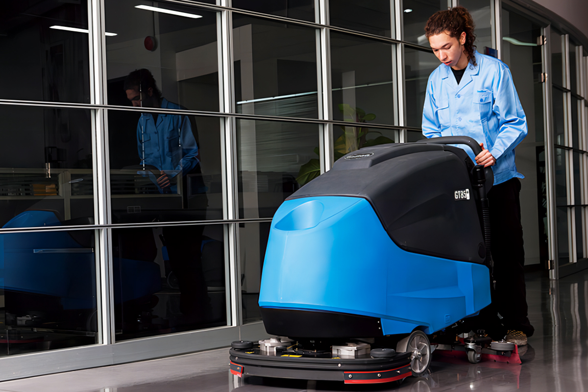 GT85+ 中型手推式洗地机专为大中型的商业及工业地面清洗设计,提供 70cm 的清洗宽度及4.5km/h 的工作速度,大容量水箱确保机器提供高效的清洁。重工设计及优质的物料为机器提供更高的可靠性及长时间工作